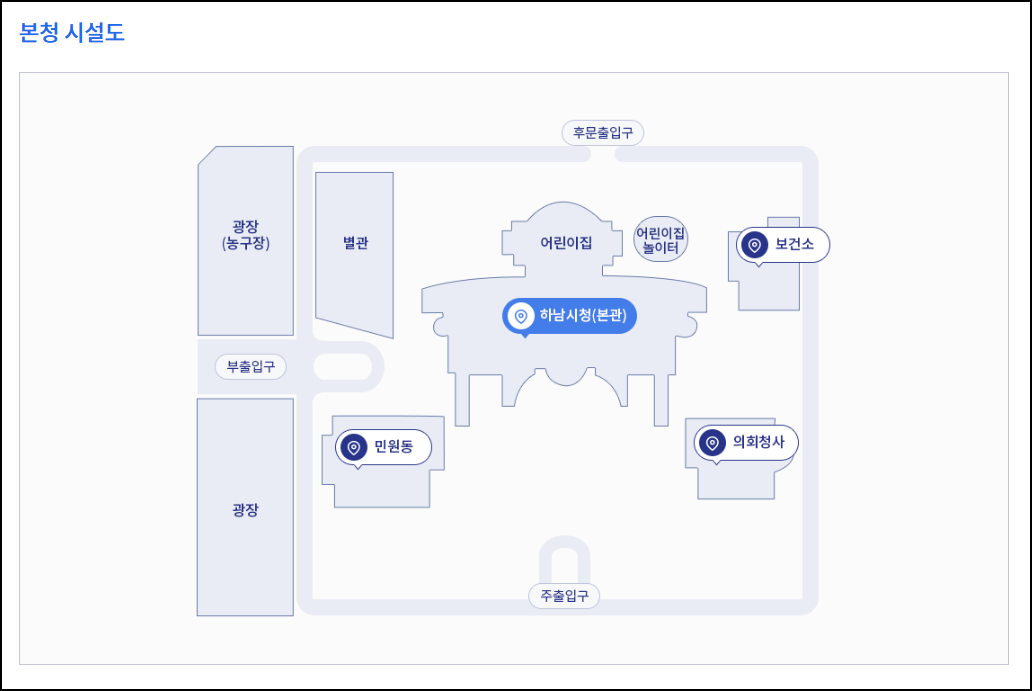 하남시는 방문객과 주민을 위해 편리하고 체계적인 주차 공간과 민원 서비스를 제공합니다. 시청 방문 시 주차장 위치 및 운영 정보를 참고하시고, 민원 관련 문의는 대표 전화로 연락 주시면 친절히 안내받으실 수 있습니다. 하남시청에서 편리하게 민원을 처리하시기 바랍니다. 감사합니다.